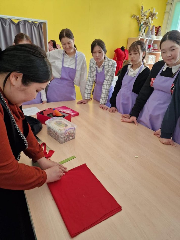 Шымкент қаласы білім басқармасына қарасты N79 жалпы орта білім беретін мектебінде білім алушылардың еңбекке икемділігі мен дағдысын, оларды практикада қолдануға дайындығын қалыптастыру мақсатында “Еңбекке баулу” пәнінің мұғалімі Кәрібай Аружан Бақытқызы 14 наурыз күні 6 "Ж" сыныбына "Бұйымды дайындау. Бұйымды безендіру" тақырыбында ашық сабақ өткізді.