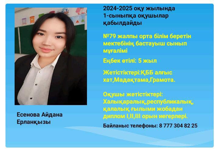 Шымкент қаласы білім басқармасына қарасты N79 жалпы орта білім беретін мектебі 1-сәуірден бірінші сыныпқа оқушыларды қабылдауды бастады!