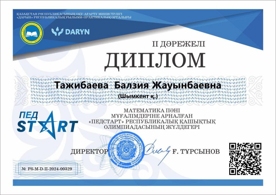 Шымкент қаласы білім басқармасына қарасты №79 жалпы орта білім беретін мектебіміздің «Математика» әдістемелік бірлестігінің мұғалімдері Қазақстан Республикасының оқу-ағарту министрлігі «Дарын» республикалық ғылыми-практикалық орталығының ұйымдастыруымен өткен «Педстарт» республикалық қашықтық олимпиадасының жүлдегерлері атануымен құттықтаймыз.