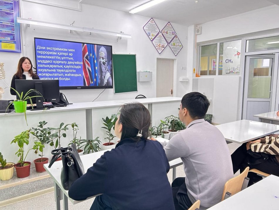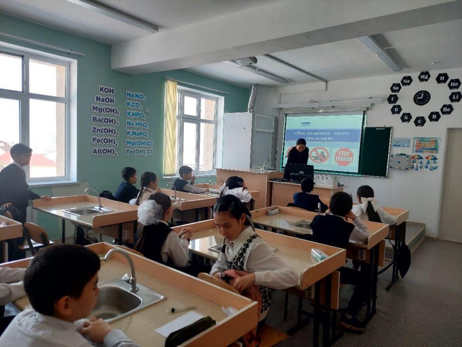Шымкент қаласы білім басқармасына қарасты №79 жалпы орта білім беретін мектебінде 2024 жылдың 17-18 қаңтар күндері аралығында 1-11 сынып жетекшілер бала өмірінің қауіпсіздігін қамтамасыз ету мақсатында «Діни экстремизм мен терроризмнің» алдын алу тақырыбында ашық тәрбие сағатын өткізді.